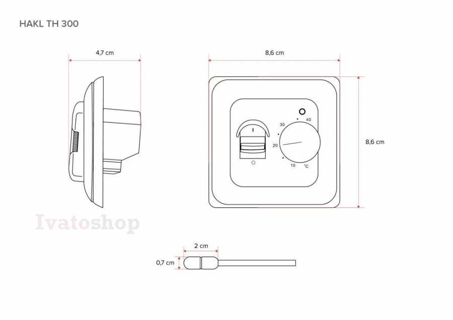 Termostat HAKL TH 300 s manuálnym nastavením a predĺženým podlahovým snímačom bol vyvinutý pre elektrické podlahové vykurovanie a systémy na temperovanie podláh. Termostat nemá možnosť regulovať teplotu v priestore (nemá zabudovaný priestorový snímač).