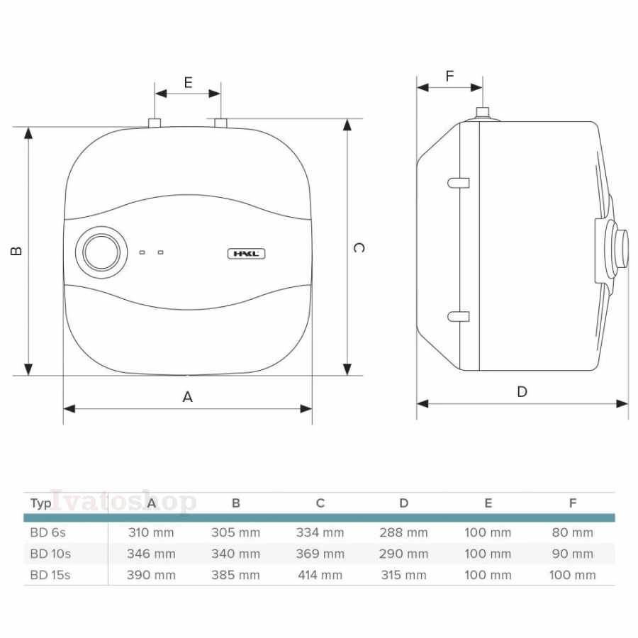 Elektrický zásobníkový ohrievač vody HAKL BD 10s s objemom vody 10 litrov je určený pre inštaláciu s pripojovacími vývodmi umiestnenými hore (opačné zapojenie ohrievač poškodí).