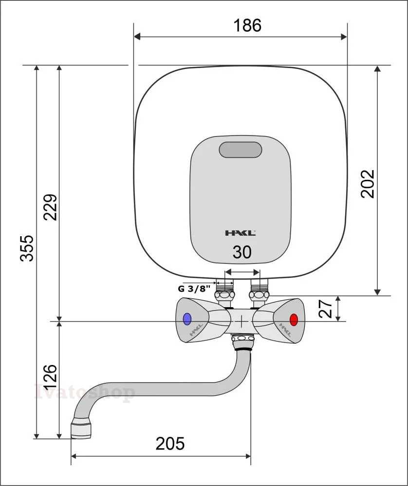 Pre jednoduchší nákup je el. prietokový ohrievač vody HAKL PL SET dodávaný spolu s vodovodnou beztlakovou nástennou klasickou batériou HAKL, s dĺžkou výtokového ramienka 20 cm.