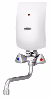 Pre jednoduchší nákup je el. prietokový ohrievač vody HAKL PM-B SET dodávaný spolu s vodovodnou beztlakovou nástennou klasickou batériou HAKL, s dĺžkou výtokového ramienka 20 cm.