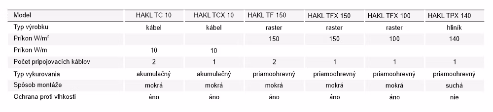 Vykurovacie káble HAKL TF sa vyznačujú kvalitným vykurovacím jadrom - odporový drôt je od renomovaného Švédskeho výrobcu KANTHAL. Obal vykurovacieho kábla je vyrobený z vysoko tepelne odolného materiálu s celkovou hrúbkou kábla 3 mm, ktorý sa nedeformuje ani pri dlhotrvajúcom vykurovaní. Pri zapojení podlahového vykurovania bez termostatu sa vykurovací kábel zohreje maximálne na 65°C, pričom bod tavenia je až 1100 °C.