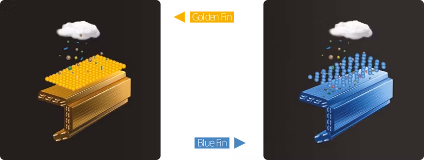 Vonkajší výmenník má špeciálnu úpravu nazývanú Golden Fin, ktorá zaručuje lepšiu ochranu (v porovnaní s rozšírenejšími úpravami, ako je Blue Fin) pred vonkajšími vplyvmi, či už chemickými alebo vplyvom počasia.