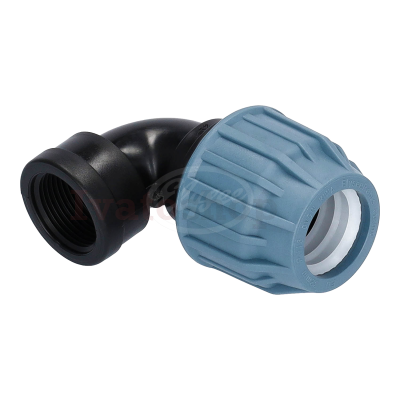 Vodárenske PP koleno na PE potrubie s vnútorným závitom, pre tlakovú normu PN10.
