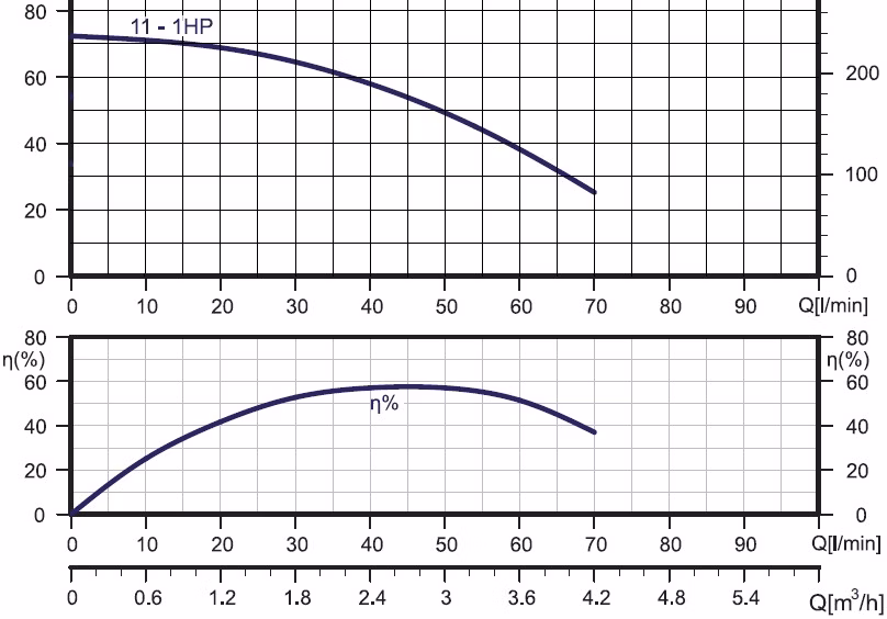 Pracovná oblasť čerpadla: H= 68-26 m, Q= 20-70 l/min.