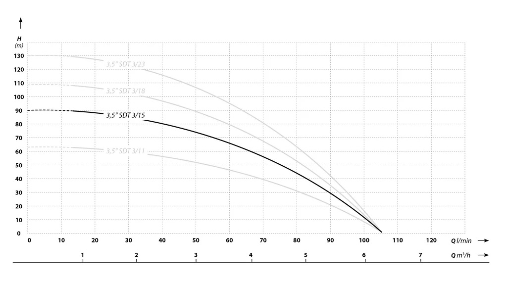 Viacstupňové hlbinné čerpadlá série SD sa vyznačujú zvýšenou odolnosťou voči abrazívnym látkam. Vďaka plávajúcim obežným kolesám a použitím odolných materiálov pri výrobe, je vhodné aj do čerstvých vrtov a studní, pre zásobovanie rodinných domov, fariem, priemyselných objektov, zavlažovanie záhrad a pod., alebo ako súčasť domácej vodárne s ponorným čerpadlom. Čerpadlo je vybavené tepelnou ochranou. Vysoká účinnosť a hospodárnosť prevádzky vzhľadom k priemeru čerpadla umožňuje široké využitie. K dispozícii v rôznych veľkostiach a výkonoch pre optimálnu prevádzku v závislosti od potrieb zákazníka.