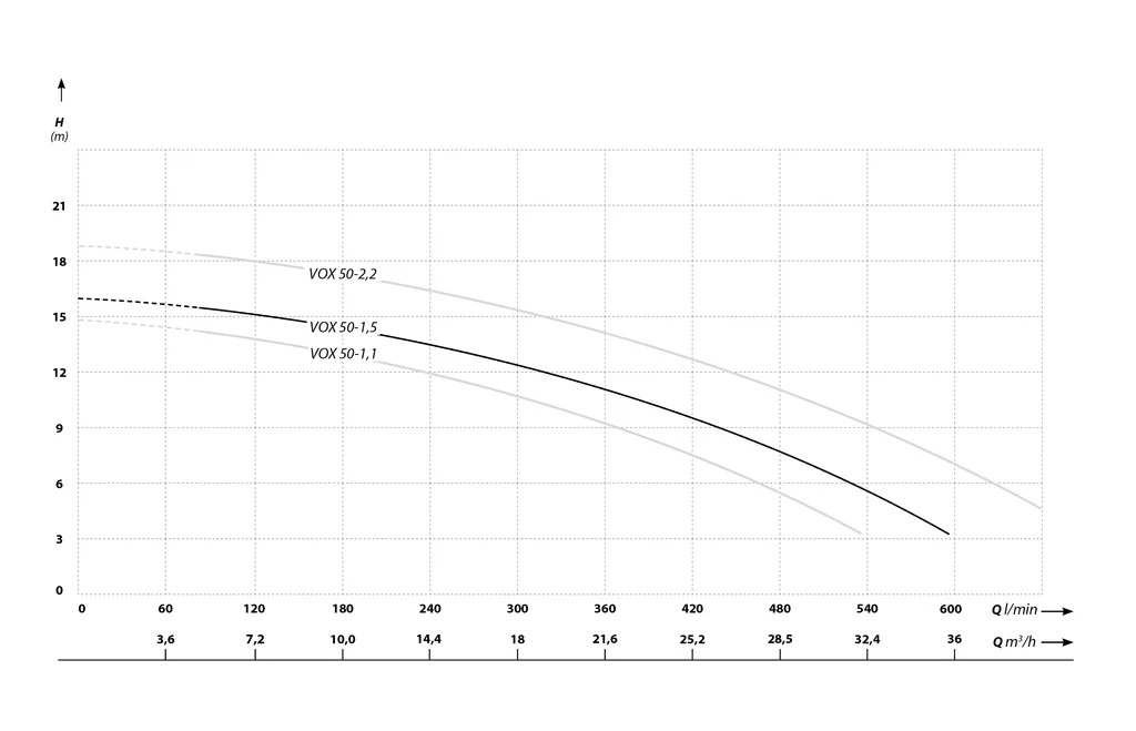Čerpadlá série VOX 50 sú určené na odčerpávanie domových splaškov a dažďovej vody z domov, bytových domov, komunít, malých podnikov a malých miest. Plný prietok s priemerom 50 mm cez hydraulický systém umožňuje nerušený prenos surových splaškov a fekálií do mestských zberných systémov odpadových vôd.