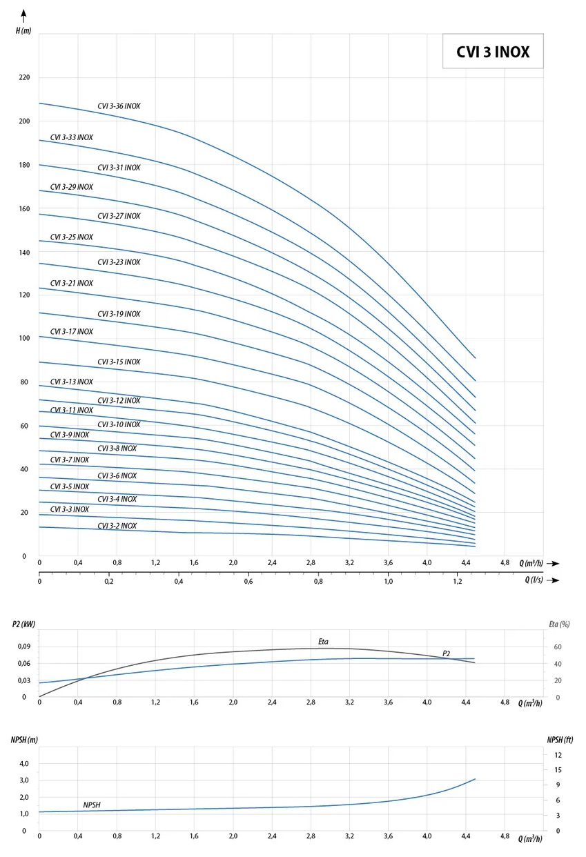 Čerpadlá CVI INOX sú vyrobené výhradne z nehrdzavejúcej ocele v častiach, ktoré sú v kontakte s vodou.
